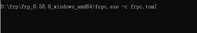 使用cmd进入到frp的目录,使用如下命令启动,不可以直接点击exe执行文件启动。