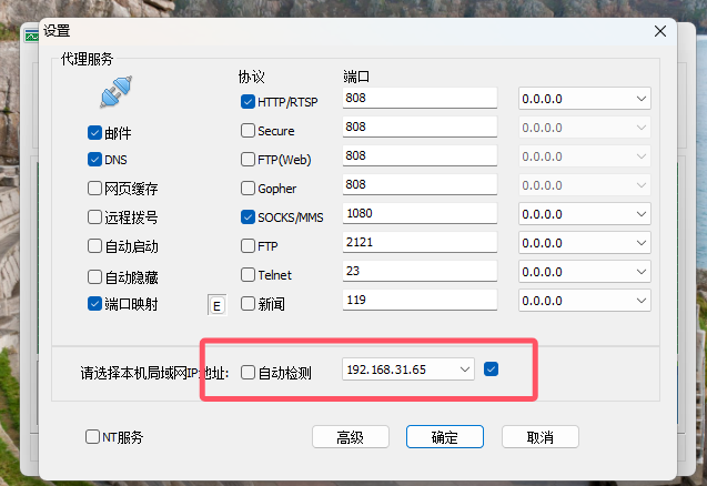 - 如果你的自动检测 是勾选的,并且后面的ip不是你虚拟机的ip,你需要取消勾选 ,然后选择好你的ip,勾选上后面的选择框锁定。其中协议的话如果没有其他需要的话,建议和我选的一样即可,有其他需要自己再做选择。