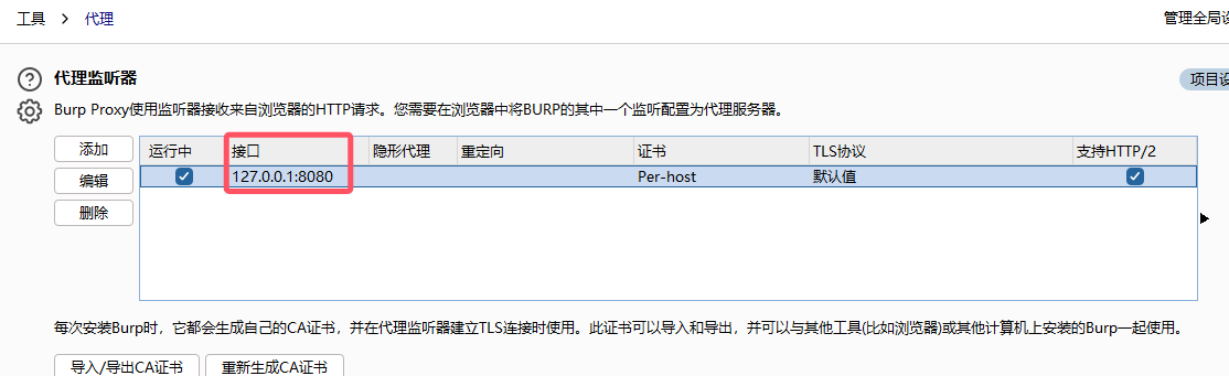 - 这里的8080就是代理接口,如果需要切换接口,点击编辑 进行修改